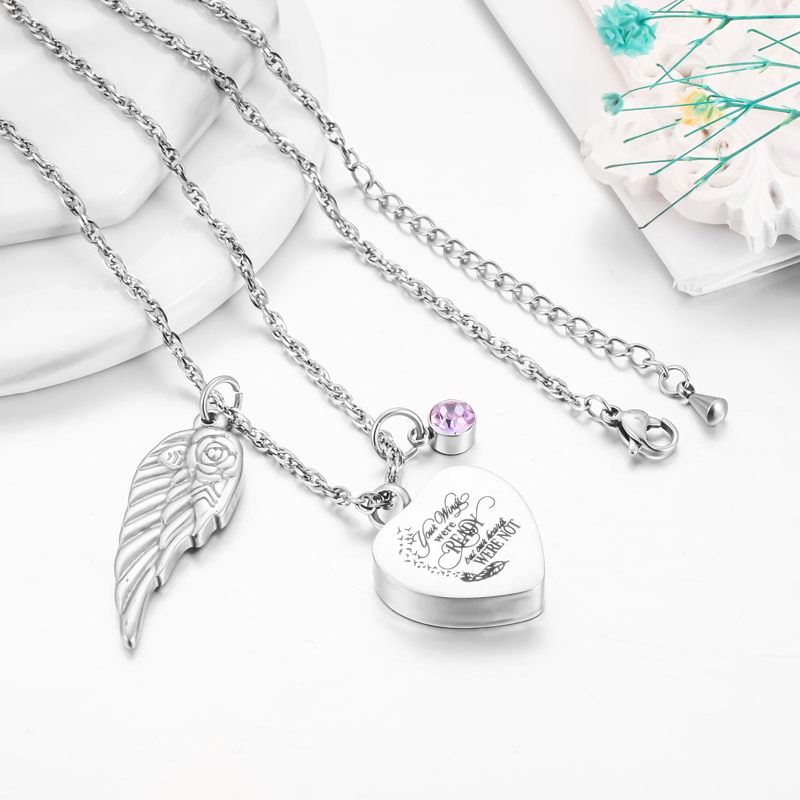 - Description: This memorial necklace features a heart - shaped pendant engraved with the poignant phrase “God knows we were READY even though WE'RE NOT”. Accompanying the locket are a detailed wing - and - rose charm and a customizable birthstone bead (available in various colors). The locket is designed to hold small mementos like ashes, a tiny photo, or a lock of hair, serving as a deeply sentimental tribute to honor the memory of a loved one.