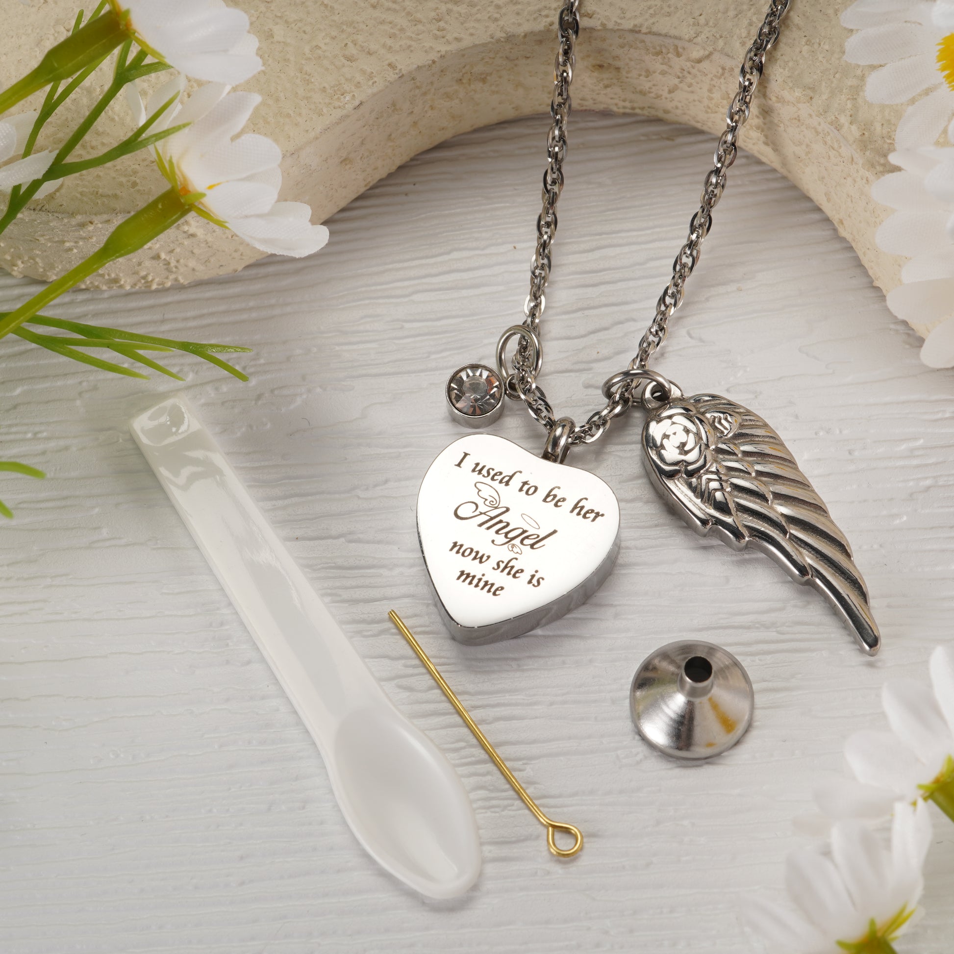 Memorial Necklace with Wings and Birthstone ‘I used to be her Angel…’ Engraving