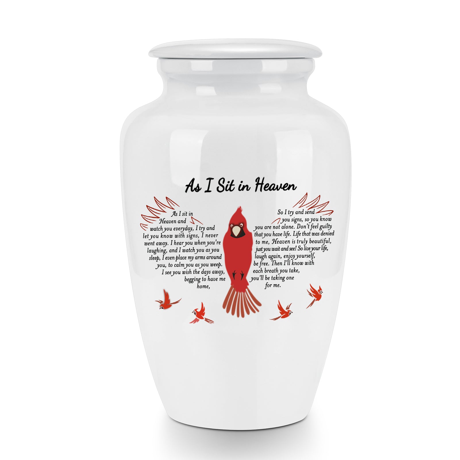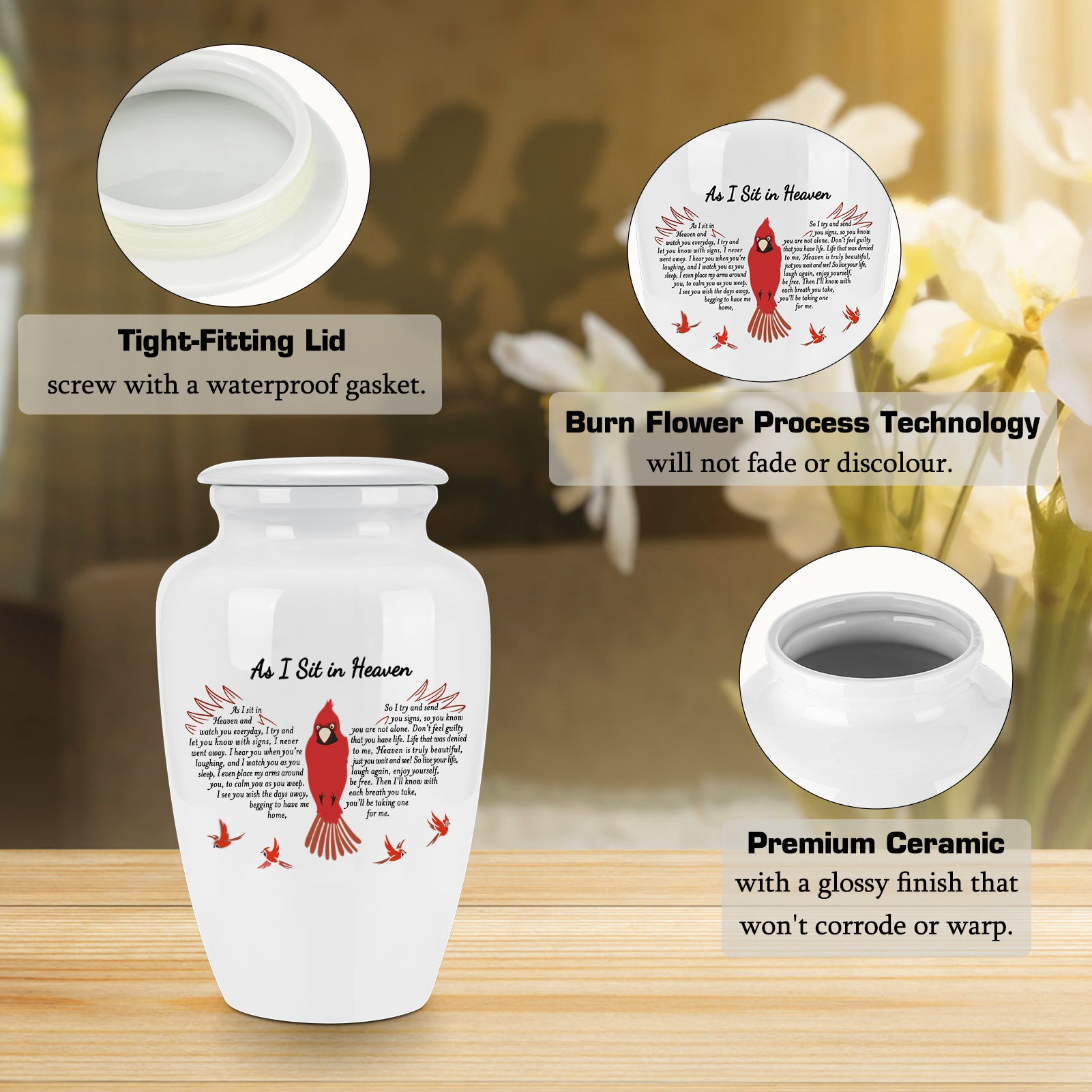 10 Inches Red Bird Cremation Urns for Human Ashes Ceramic Keepsake