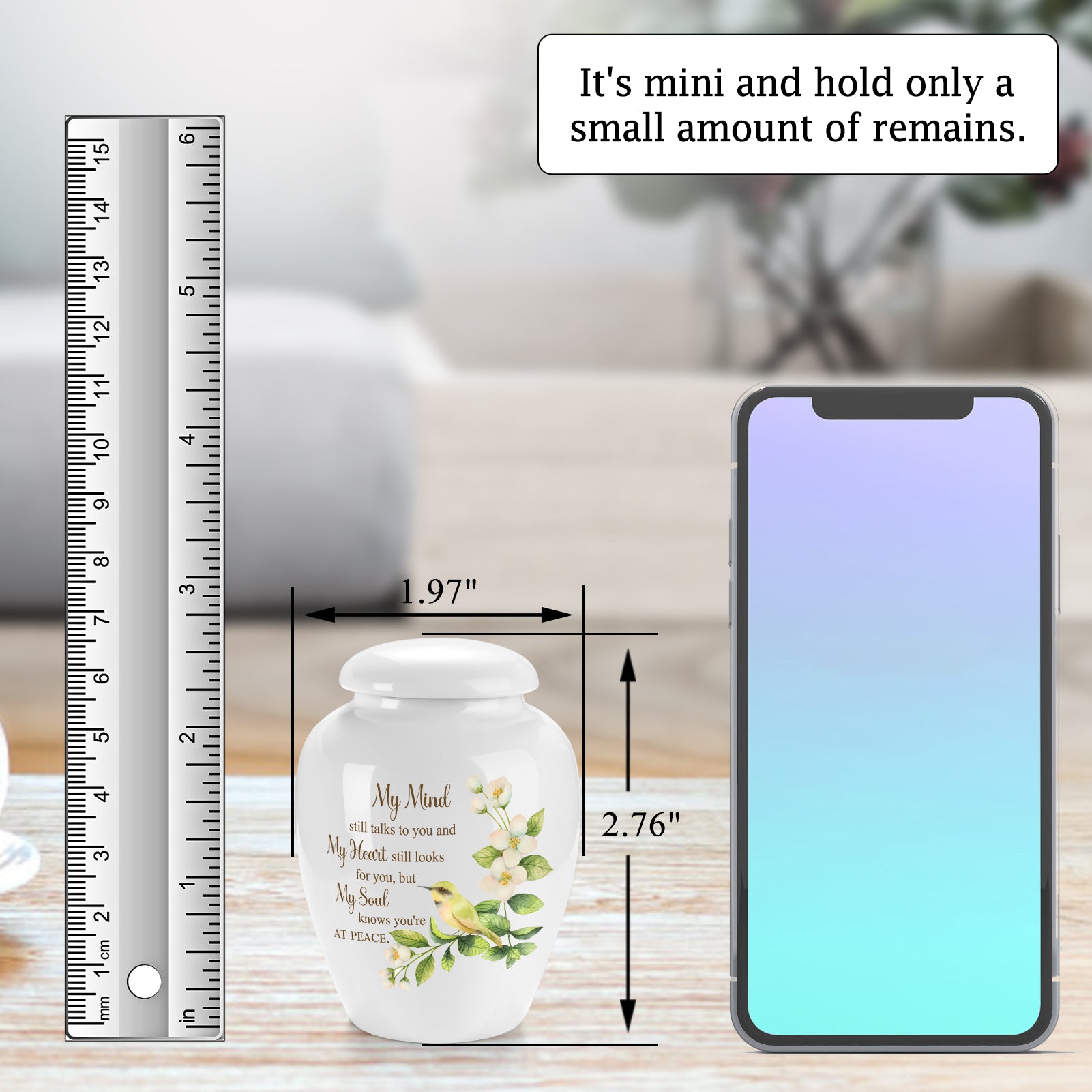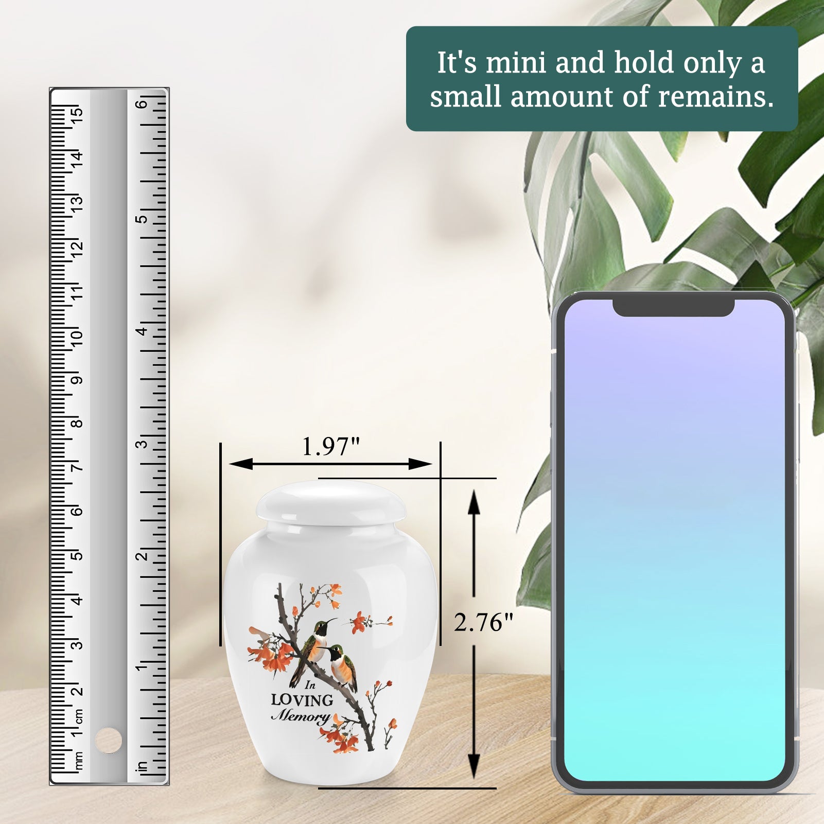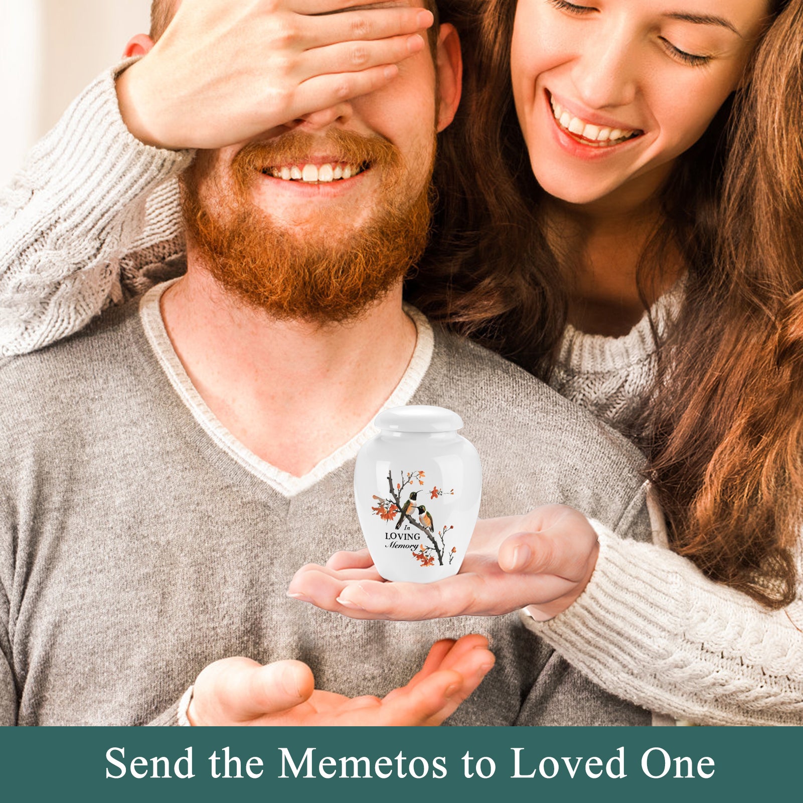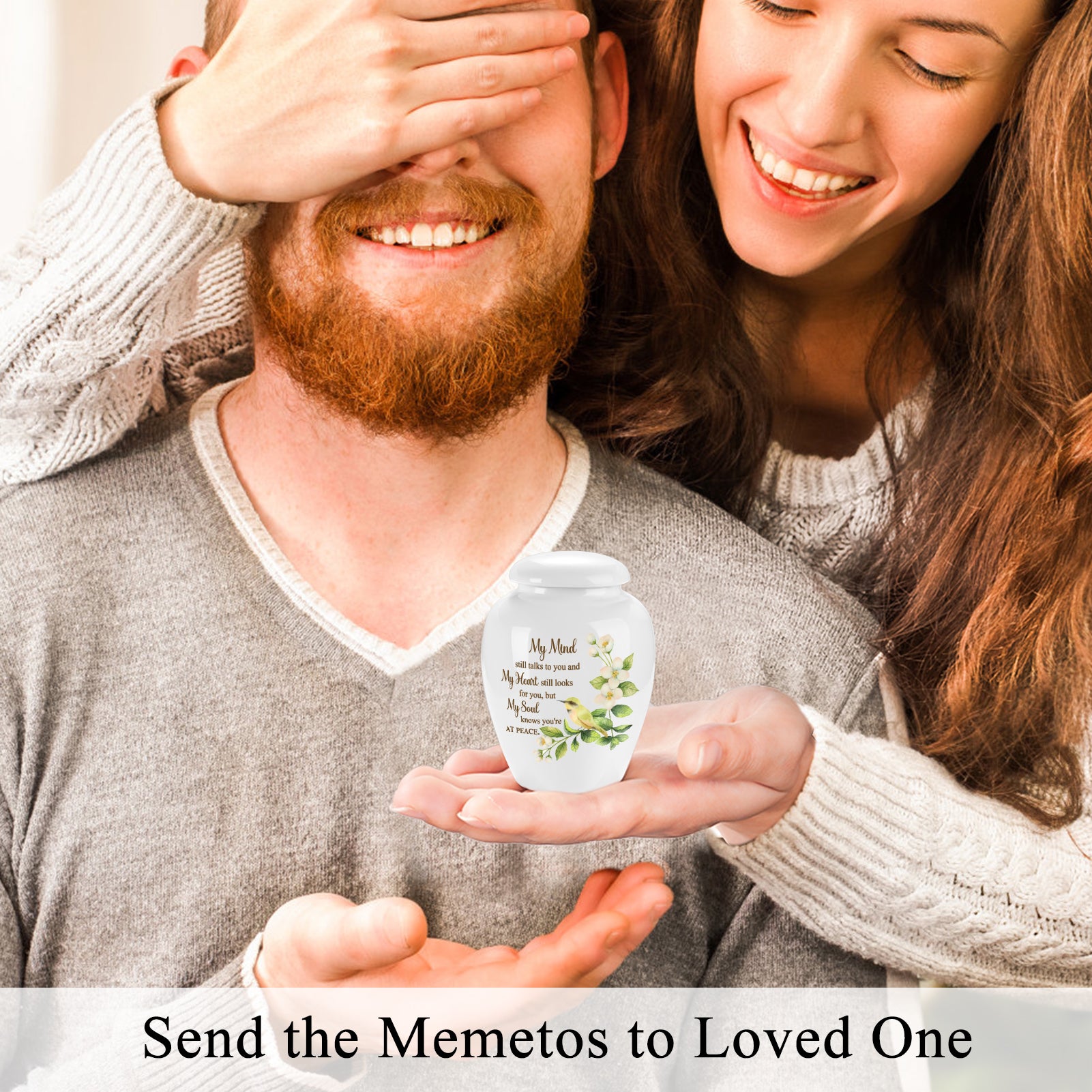 Description:  Made of ceramic, our mini urn for human ashes is great for sharing the ashes of your loved ones among family members or close friends
