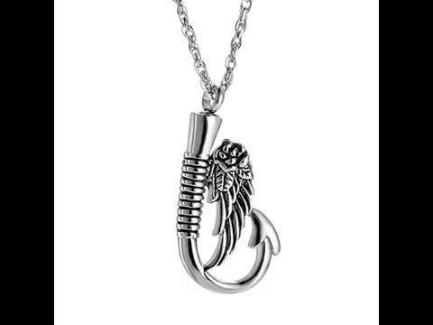 • Description: There is angle wings on this mini cremation necklace of fish hook. The keepsake can hold a small part of the ash, fur and hair. This cremation jewelry can bring you peace.