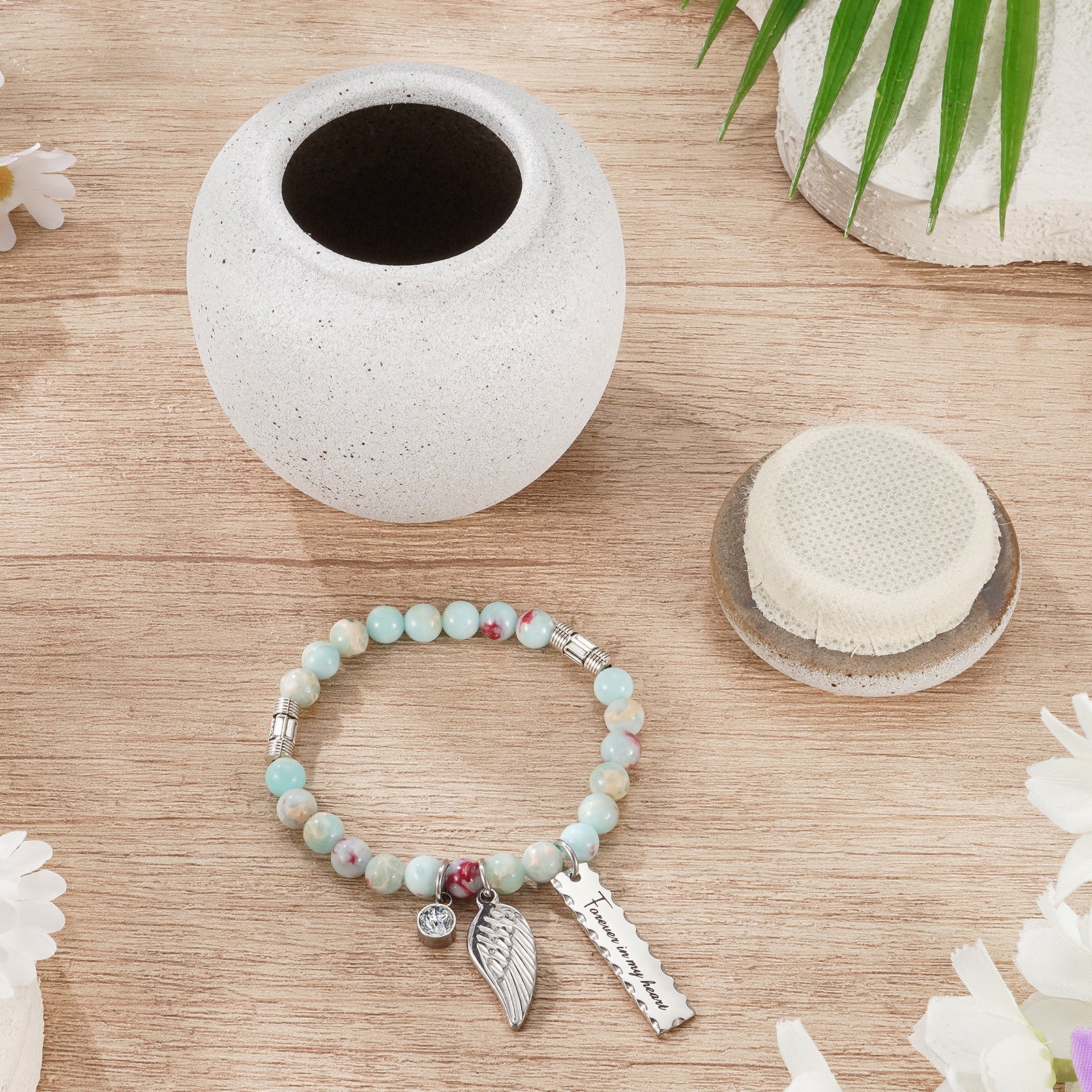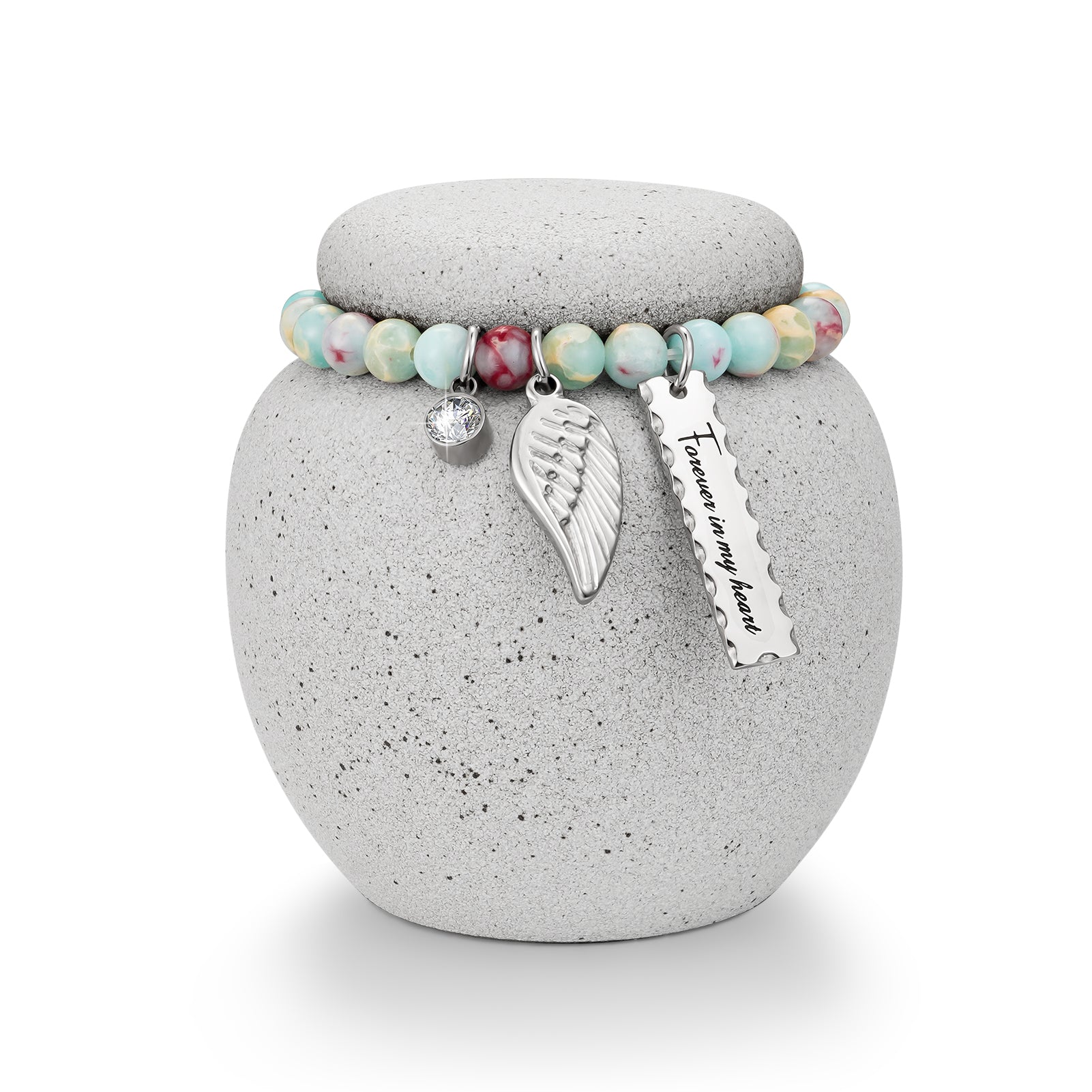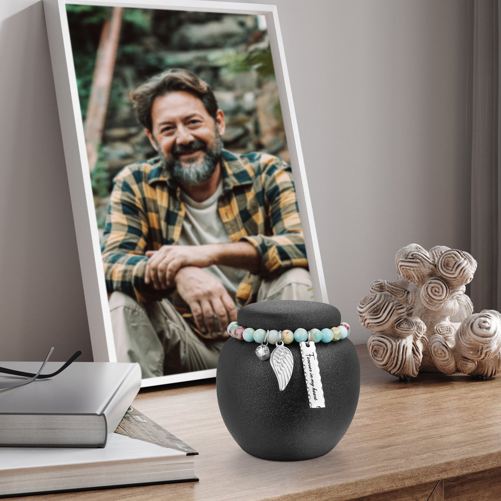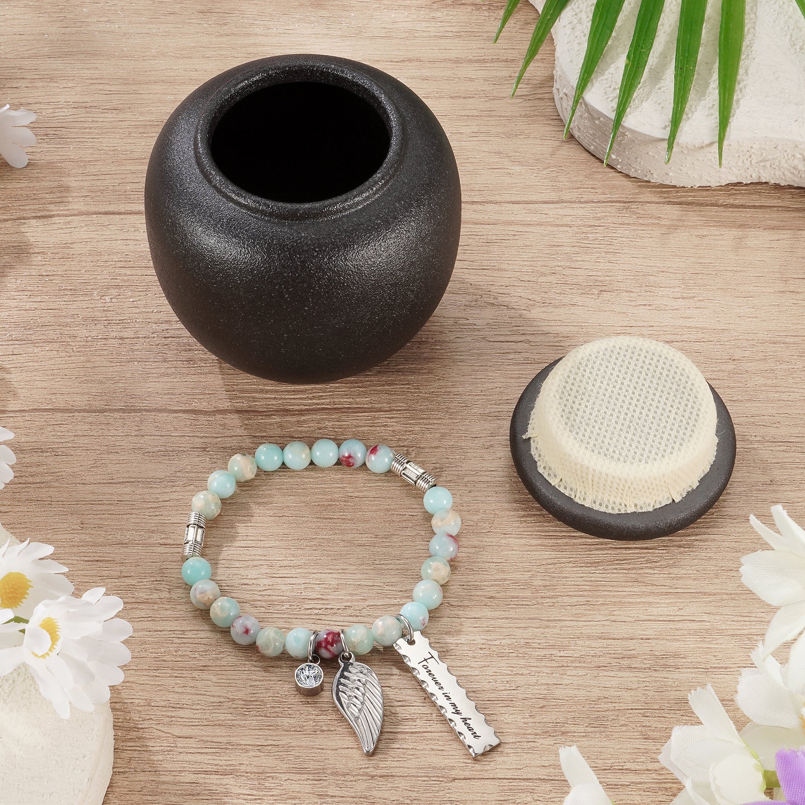 Description: Made from premium ceramic with a special touching surface, our small urn for human ashes keepsake features a unique Shoushan stone chain, symbolizing eternal love and connection.