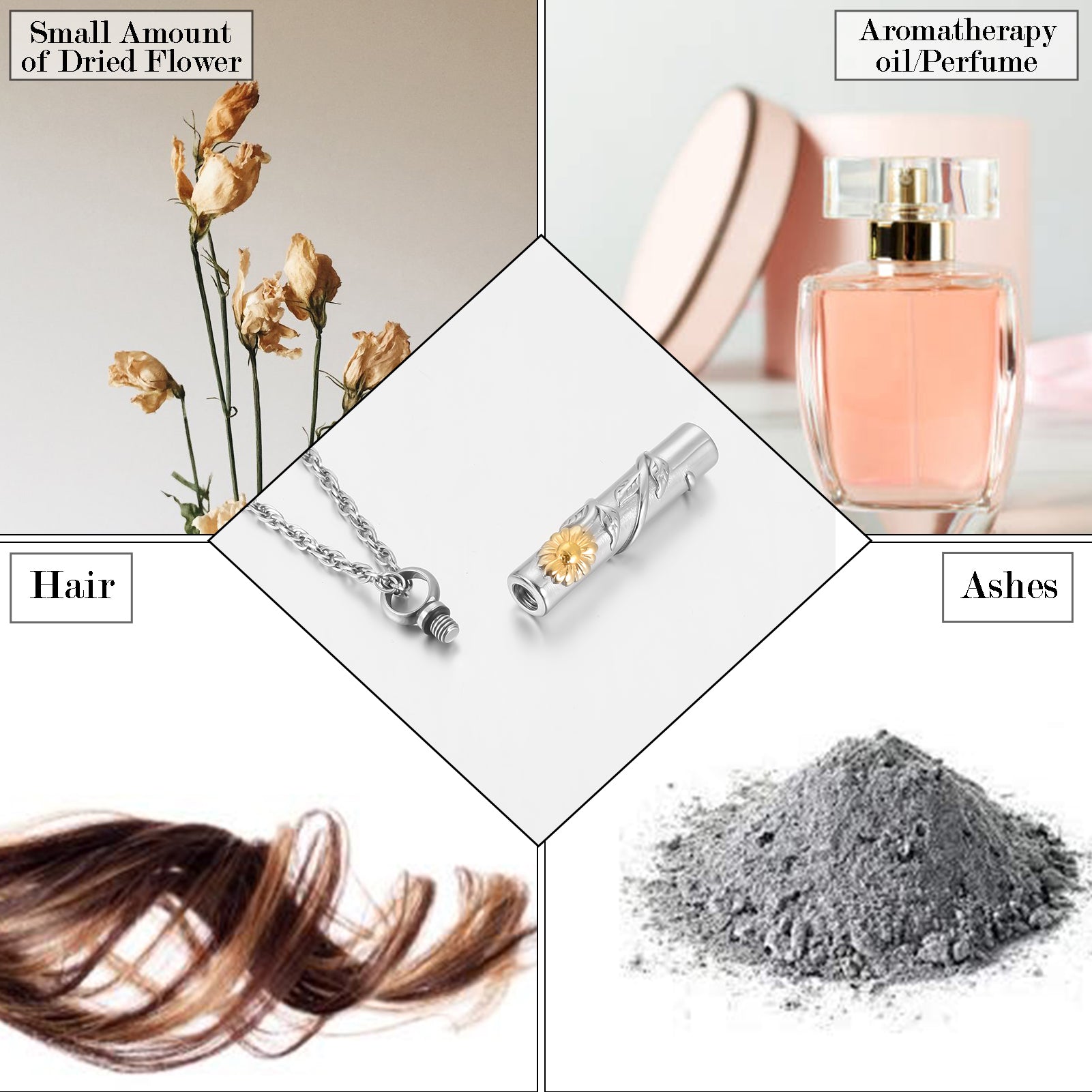 • Description: This fillable sunflower cremation pendant can keep the beautiful memories of you and your loved ones. Besides, it can help you get out of the pain and get peace.