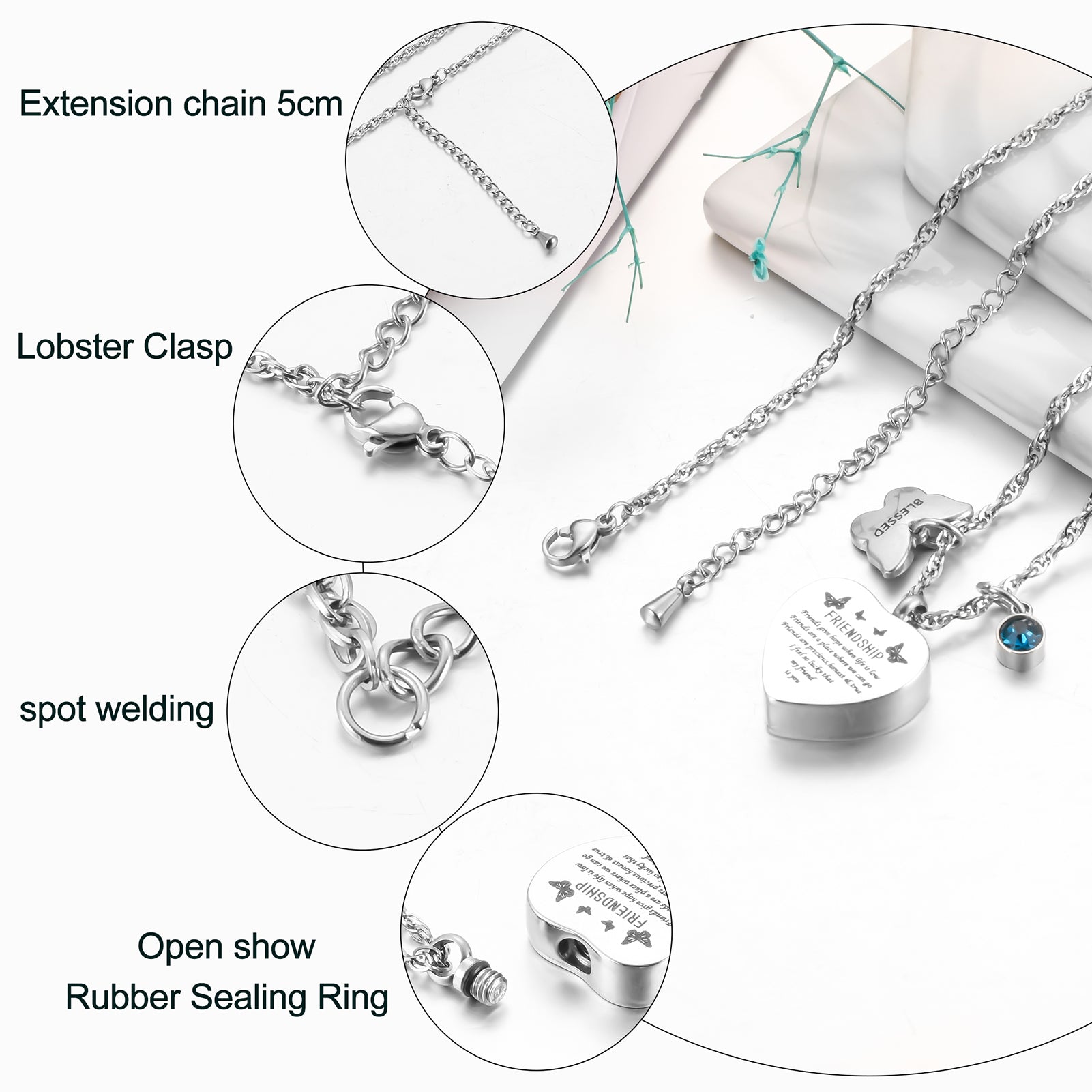 • Description: This cremation necklace can hold ashes, hair, or oil. This product can save good memories between you. There is a waterproof ring at the screw mouth to ensure complete dryness.