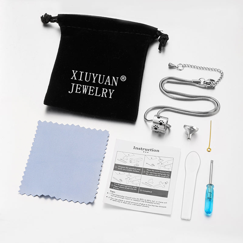 • Description: This cremation necklace can hold a small part of ashes and hair. It retains the memories of your sincere friends and you, and accompanies you to take you out of pain. Note that this necklace has a smaller capacity.